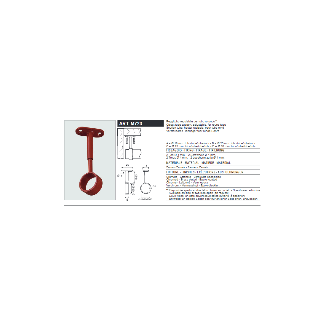 REGGITUBO CHIUSO PER TUBO TONDO CENTRALE NICHELATO D.18 mm - MANART