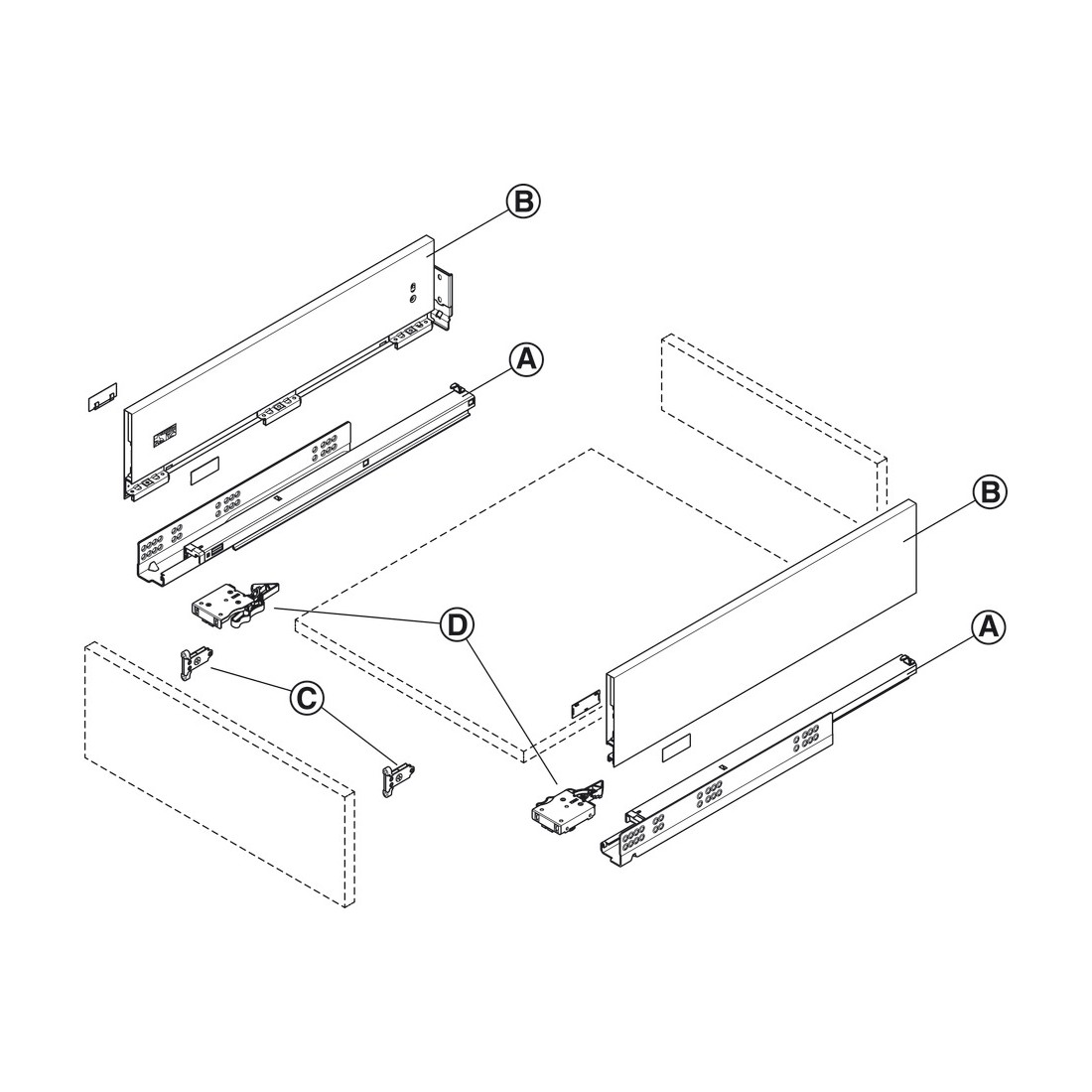 GUIDA CASSETTO SYNCRO MATRIX UMA30 3D ESTRAZIONE TOTALE 450mm 30 KG AMMORTIZZATA - HAFELE