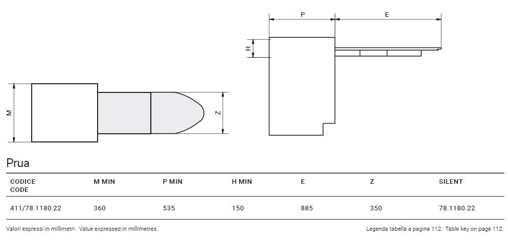 Le cerniere per la ribalta del frontale cassetto sono da ordinare a parte.