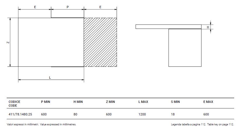 Estrazione: massima apertura piano 600 mm