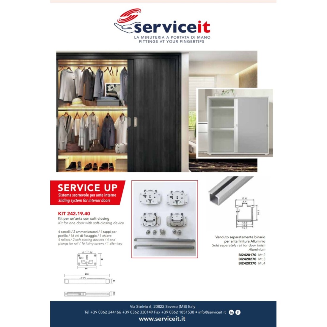 BINARIO PER GUARNITURA SLIDE 40 ANTA SCORREVOLE PER MOBILI AMMORTIZZATO SERVICE