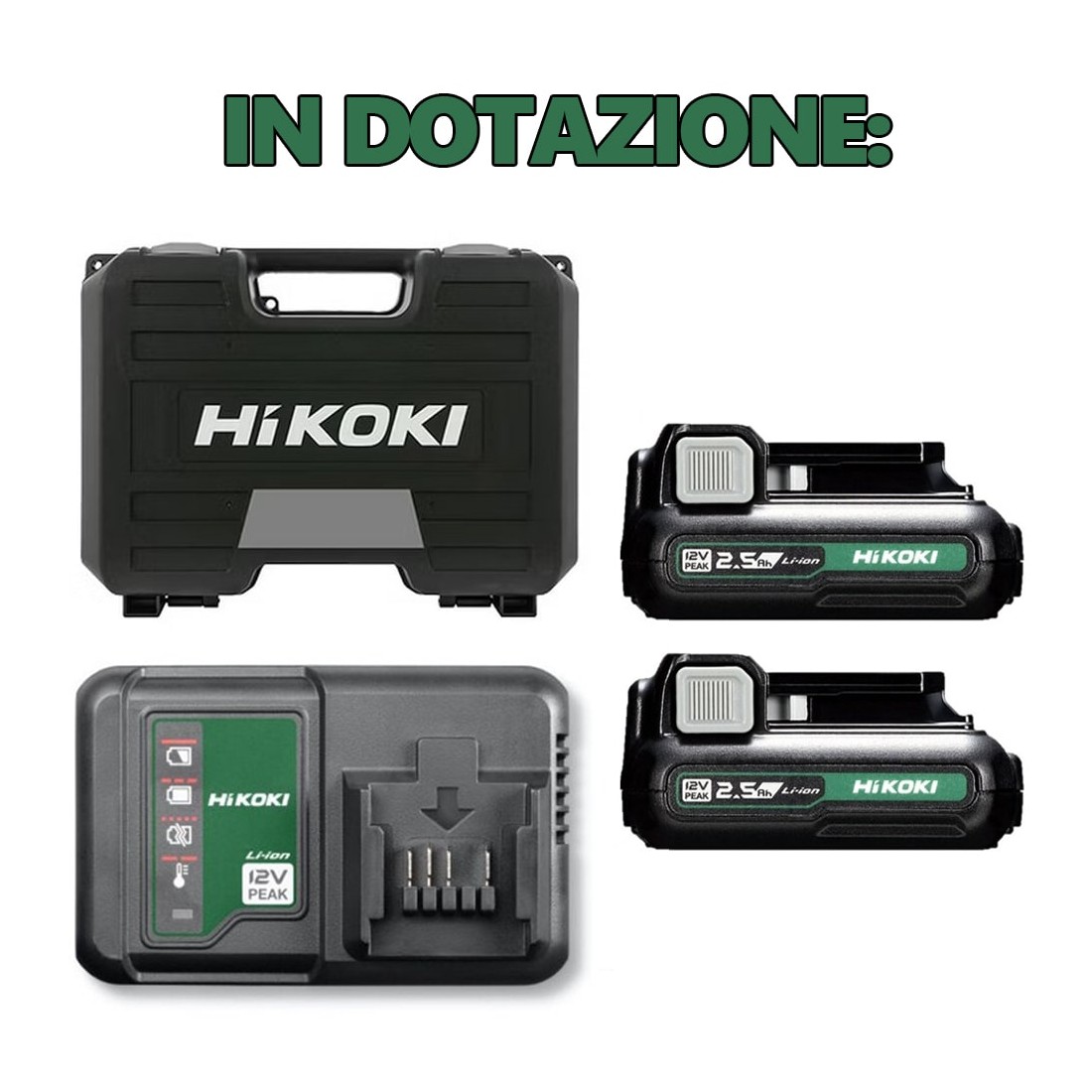 Kit promo combo HIKOKI KC12DH trapano con percussione DV12DD + Tassellatore DH12DD + 2 batterie 12V 2,5Ah